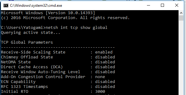 - Buka CMD dengan menggunakan Run Administrator kemudian ketikan Command berikut "netsh int tcp show global" tanpa tanda kutip